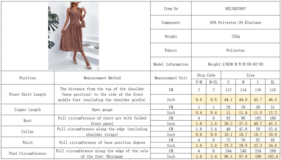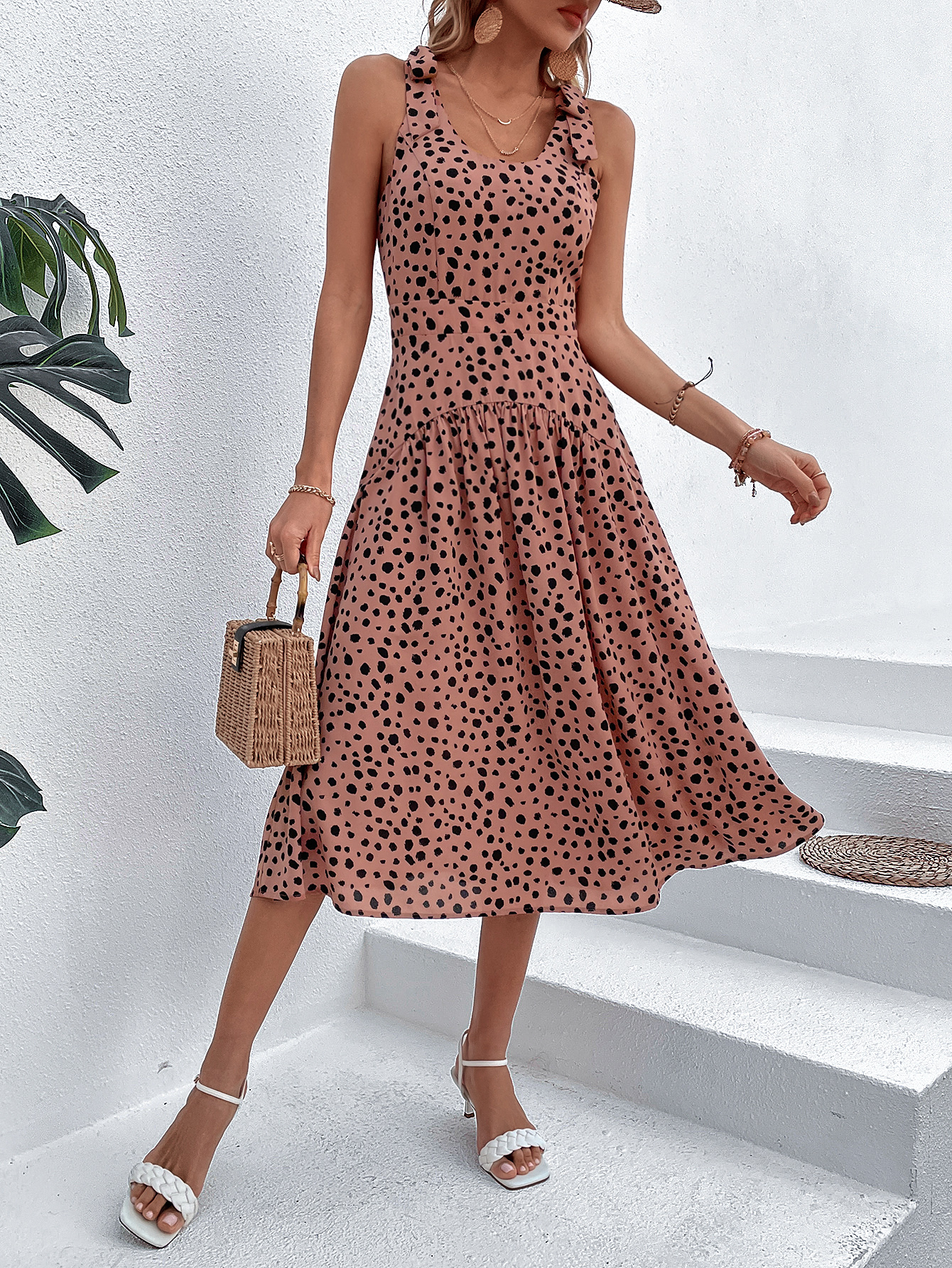 Summer Square Neck Sleeveless Waist Polka Dot Dress Long