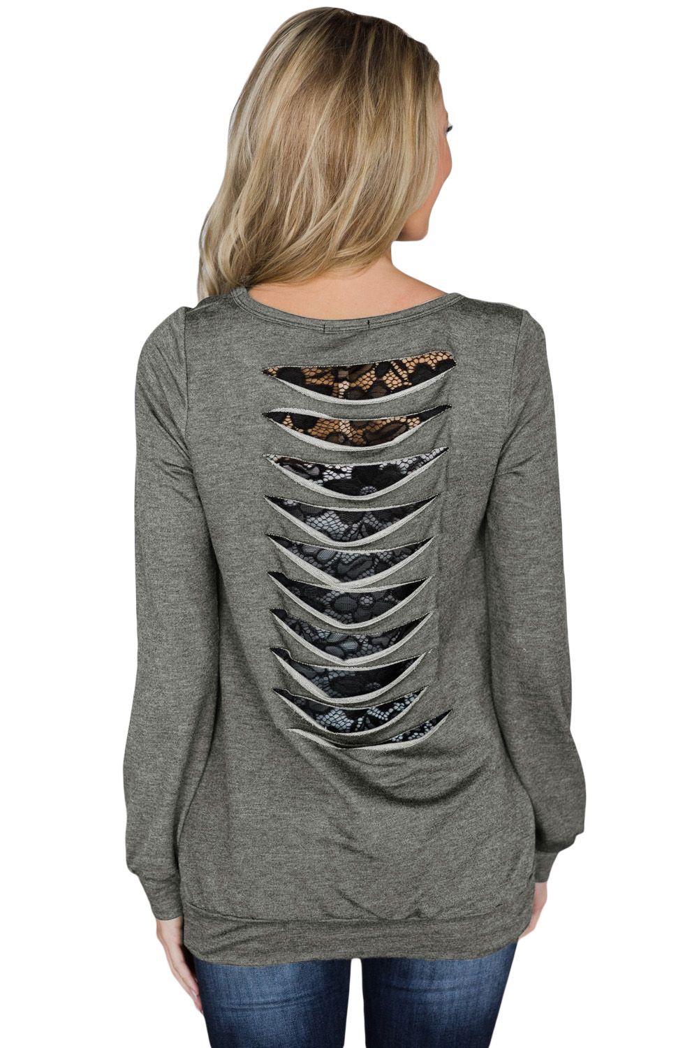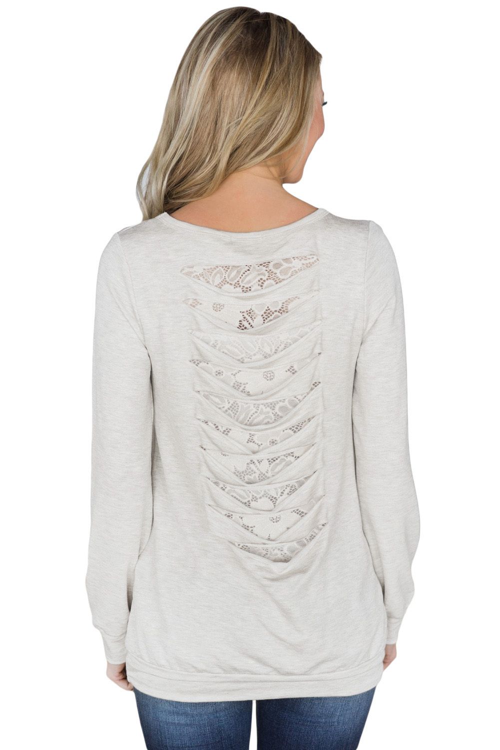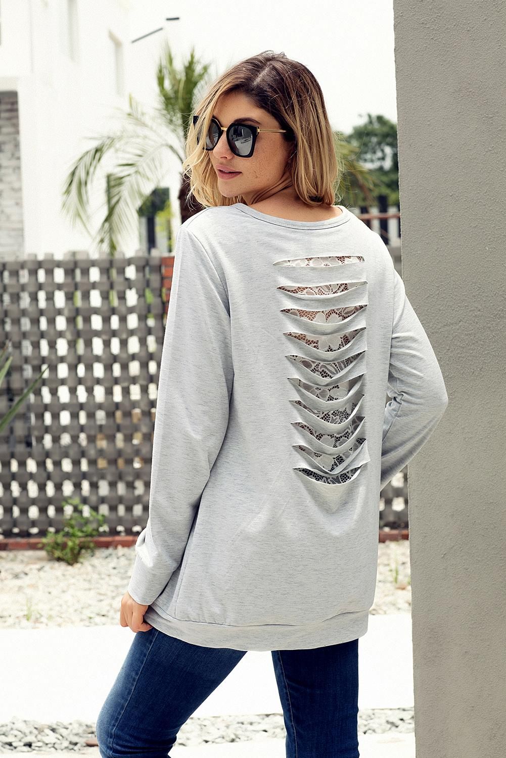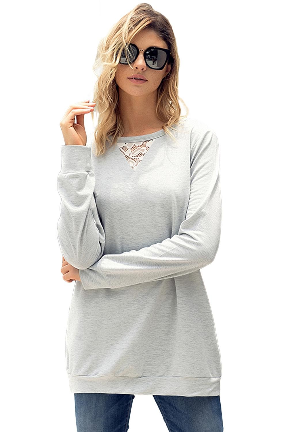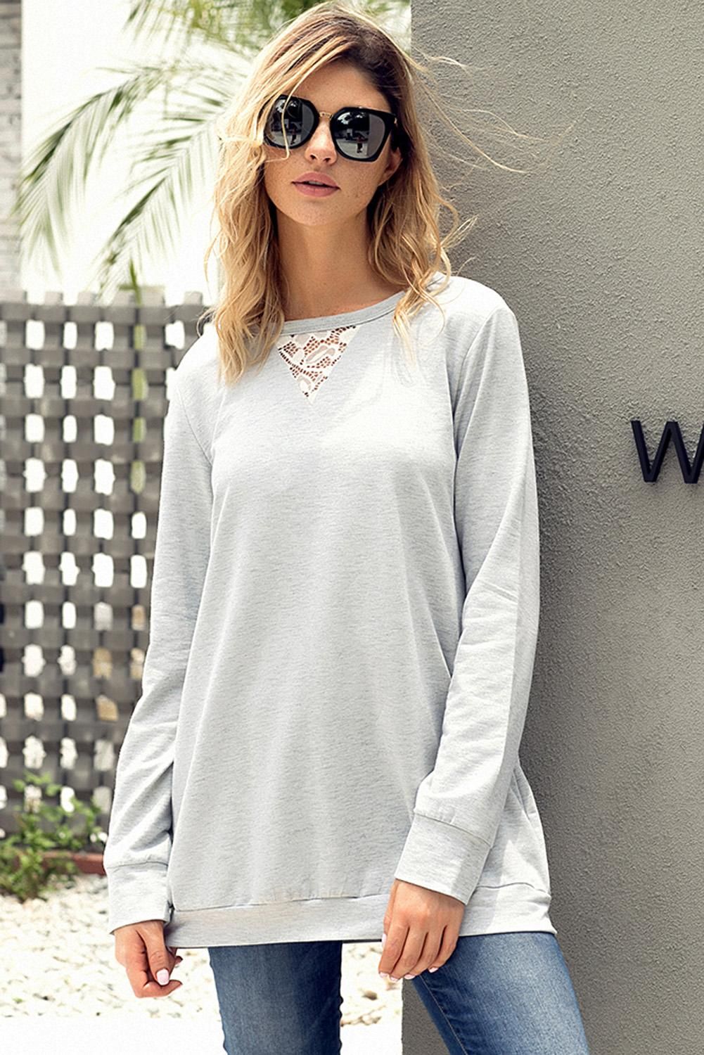 Lace Cutout Insert Light Grey Pullover Sweatshirt