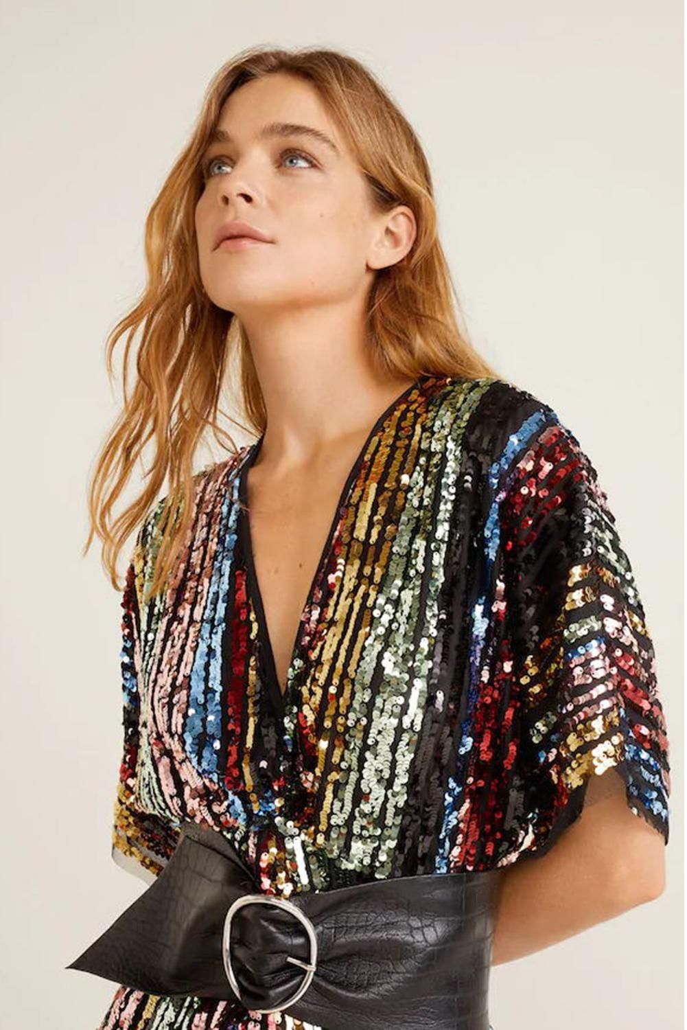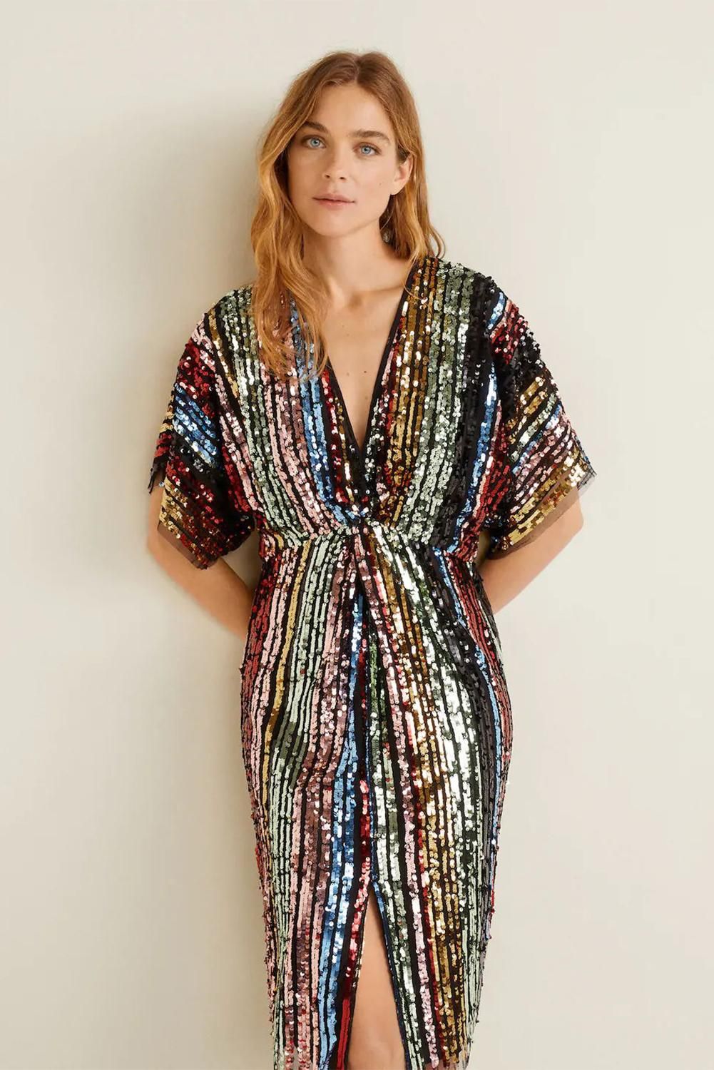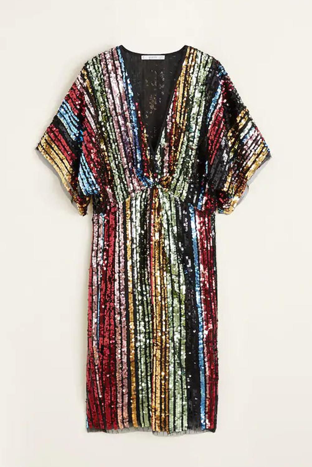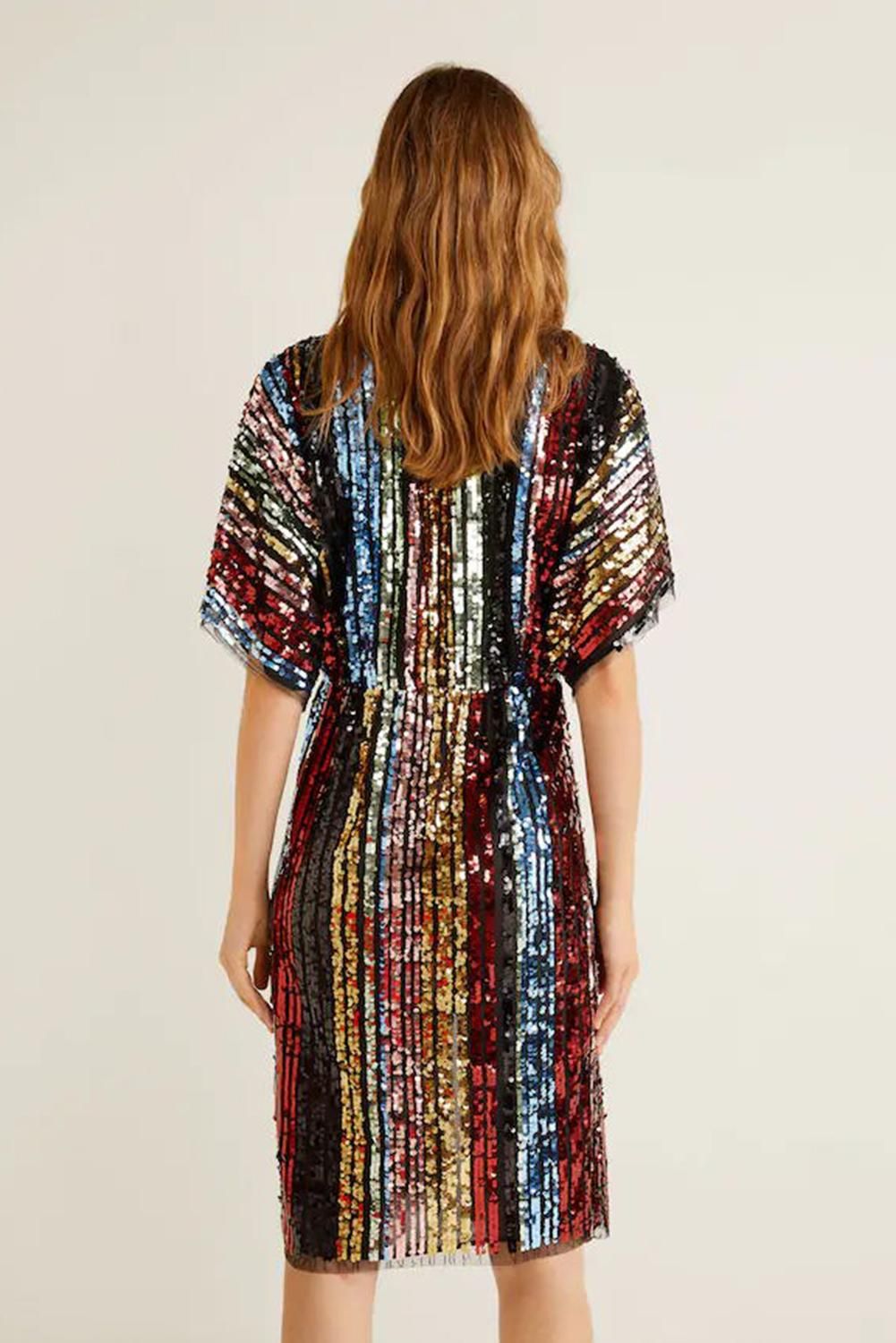 Multicolor Sequin Deep V Neck Tunic Dress