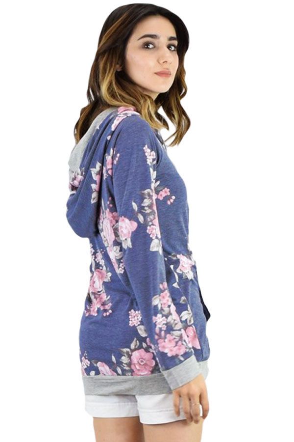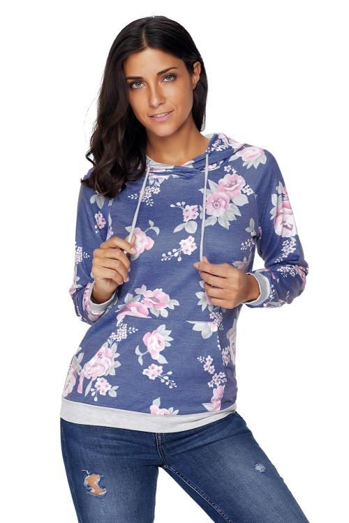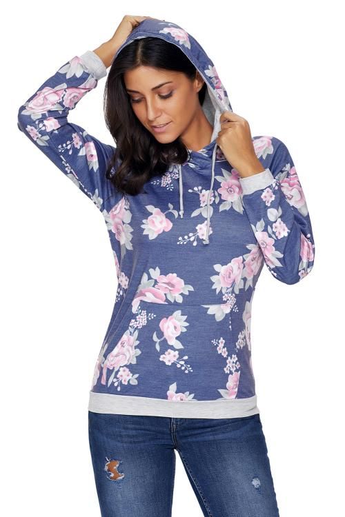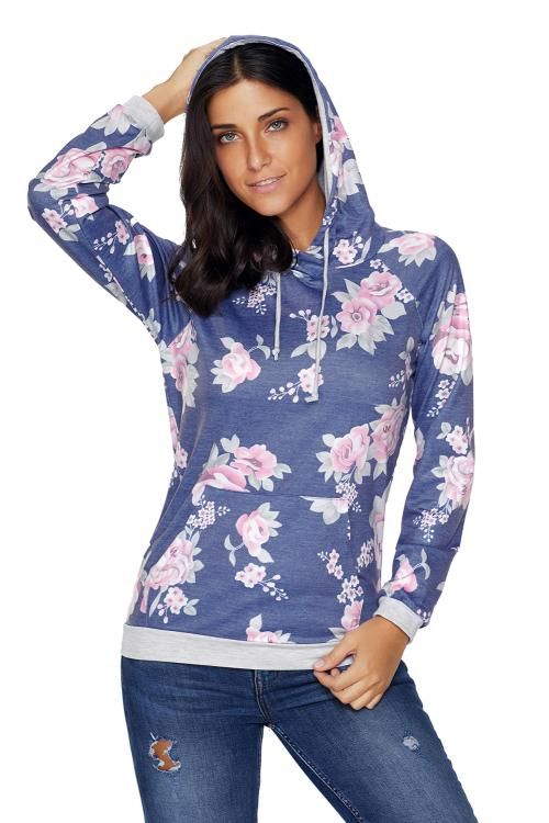 Navy Pink Floral Drawstring Hoodie