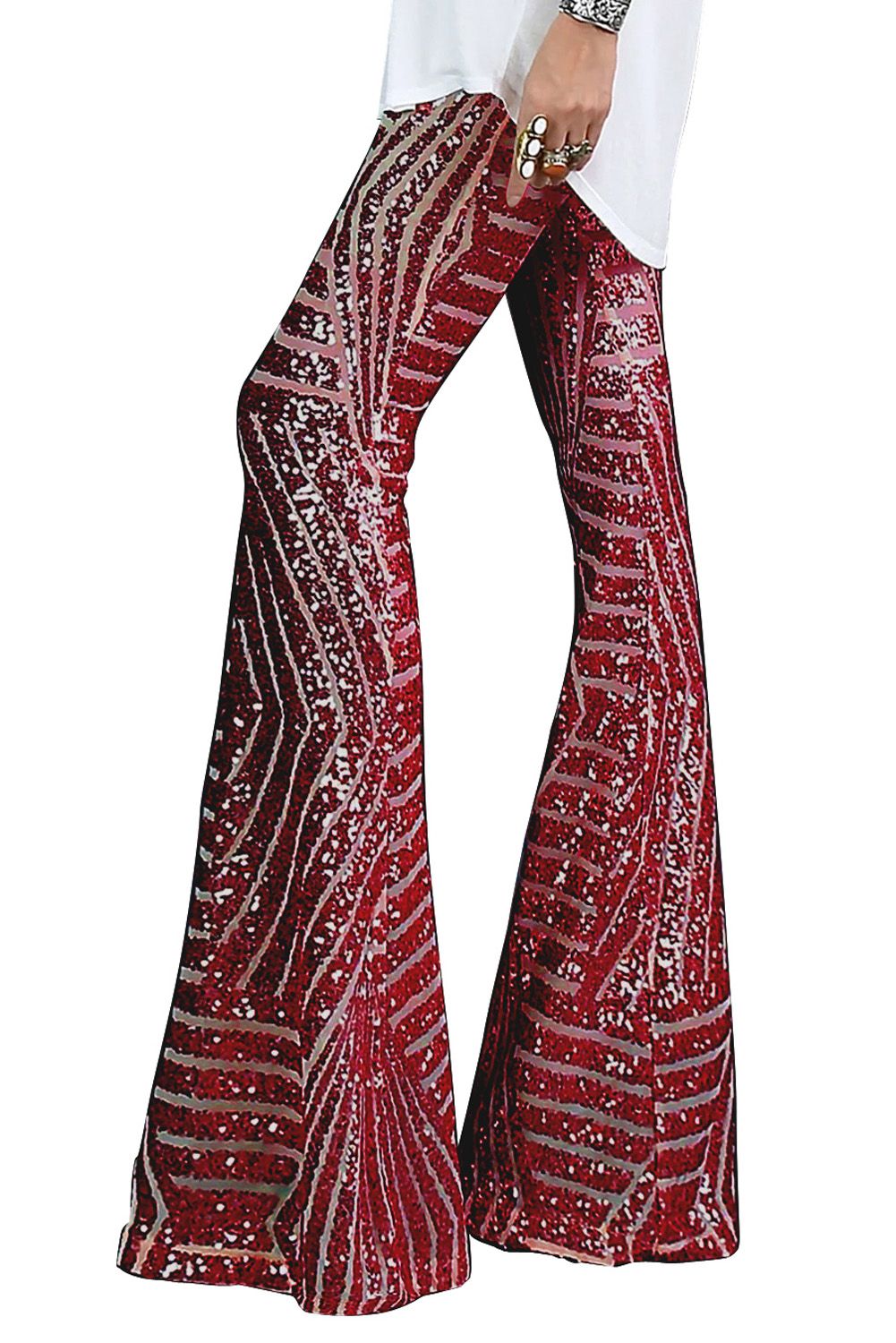 Red Sequin Wide Leg Pants