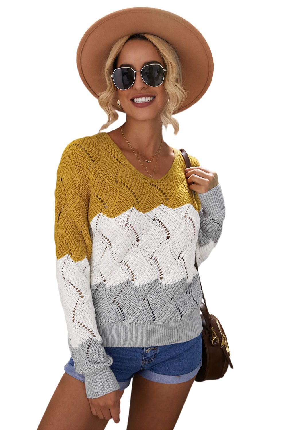 Pink Color Block Knitted Cut Out Pullover Sweater