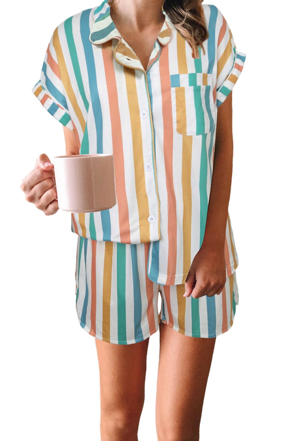 This pajamas set with colorful stripes is the summer color