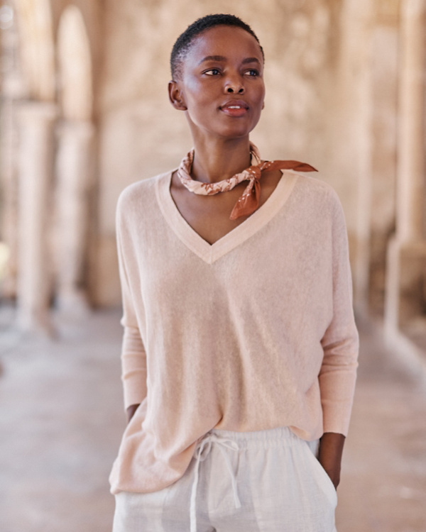 A just-right oversized sweater in soft, lightweight linen, with an alluring neckline, shortened sleeves, and flattering side vents. It's an ideal top note to a roster of skinnies and leggings.