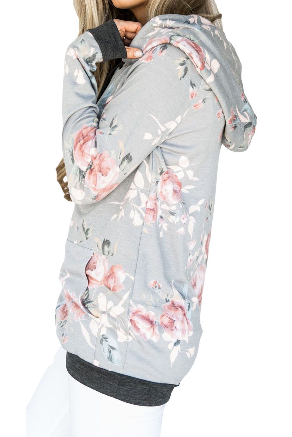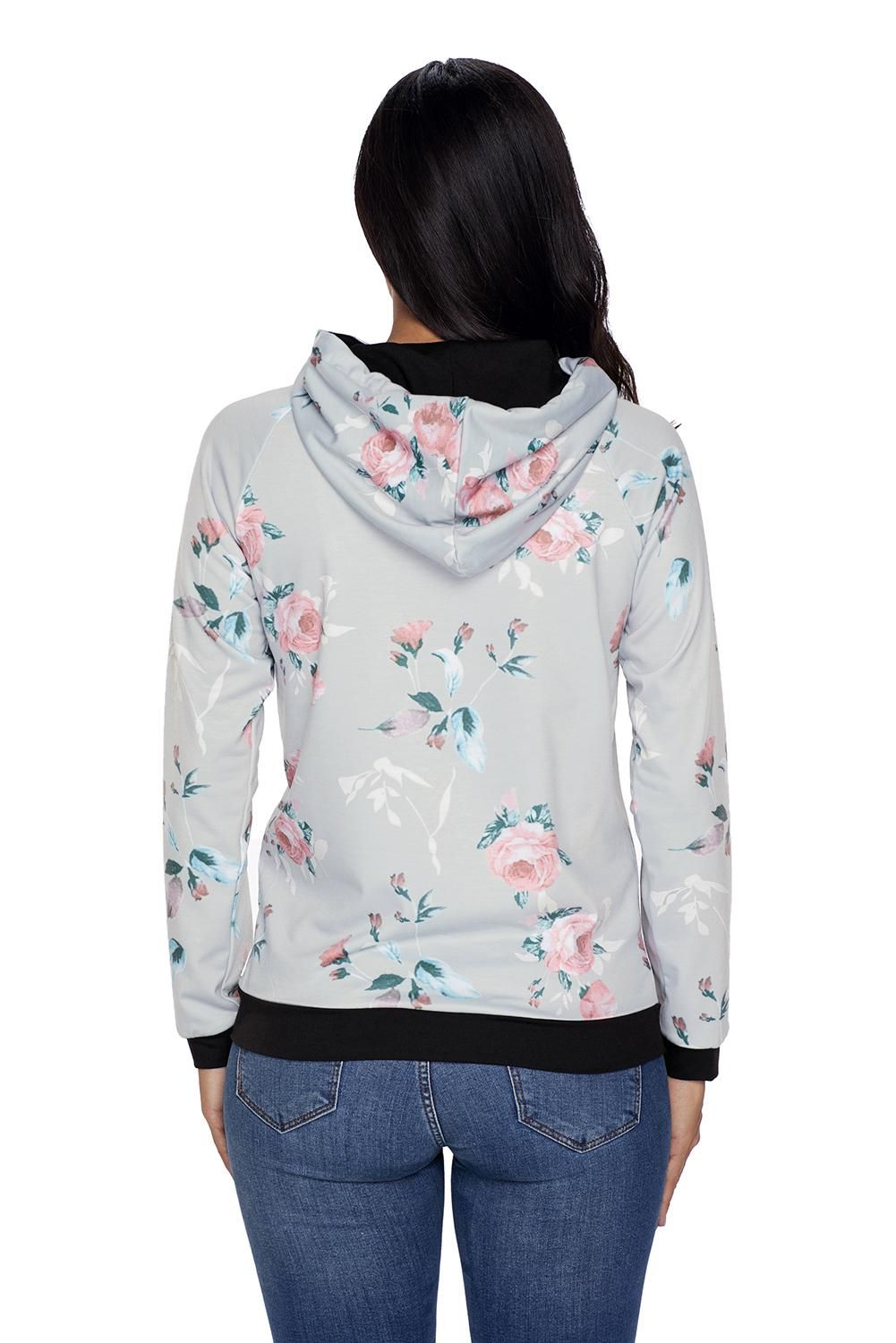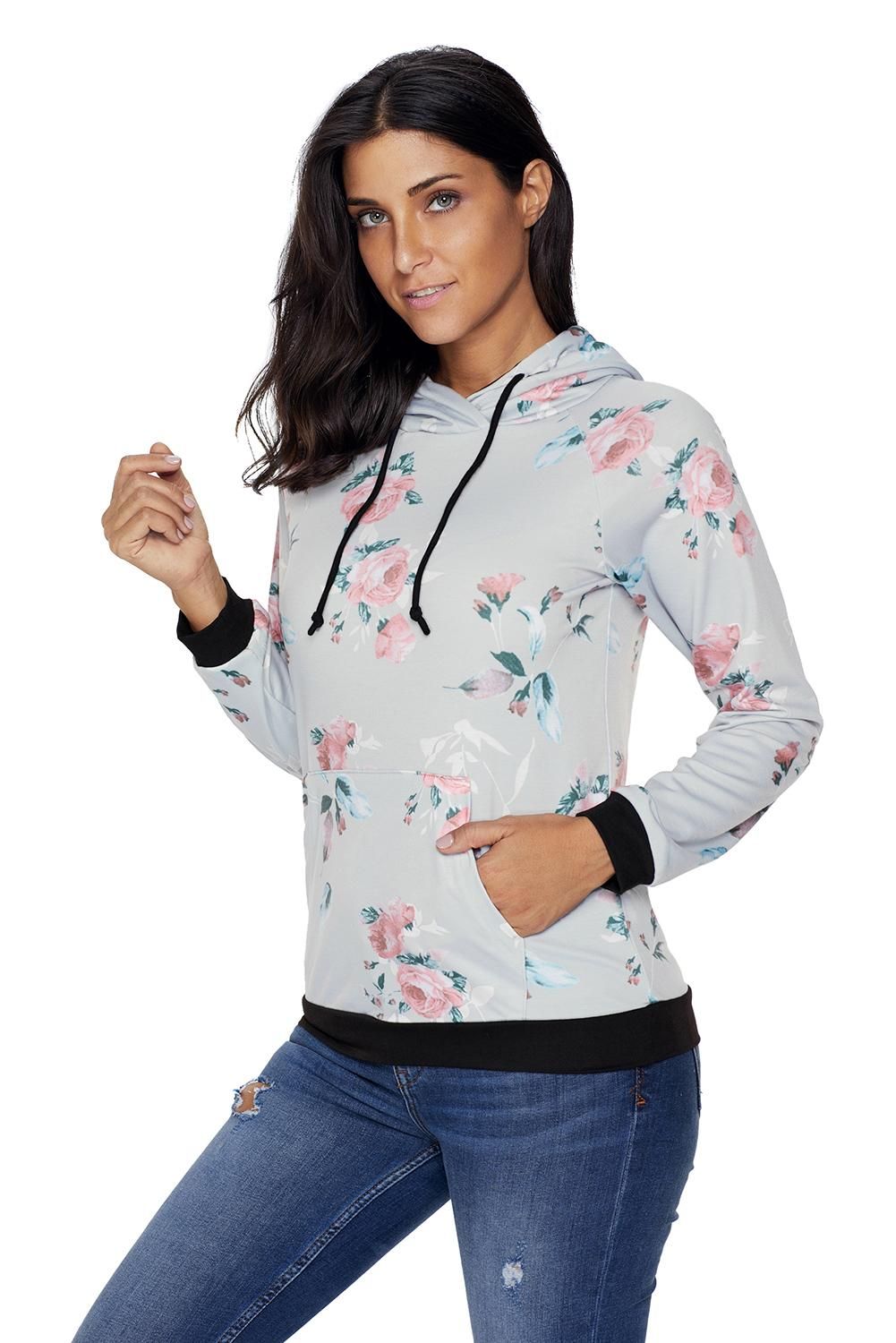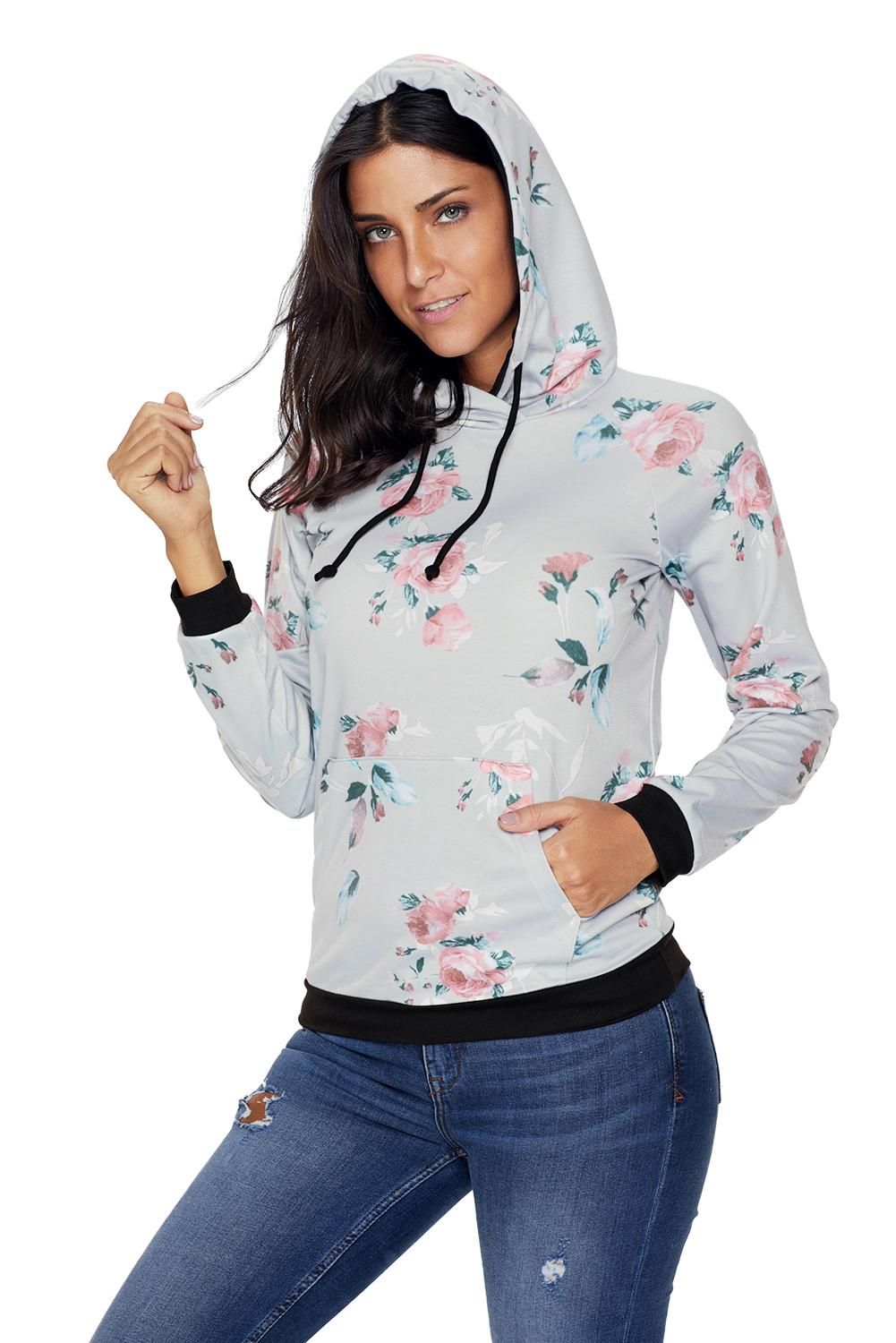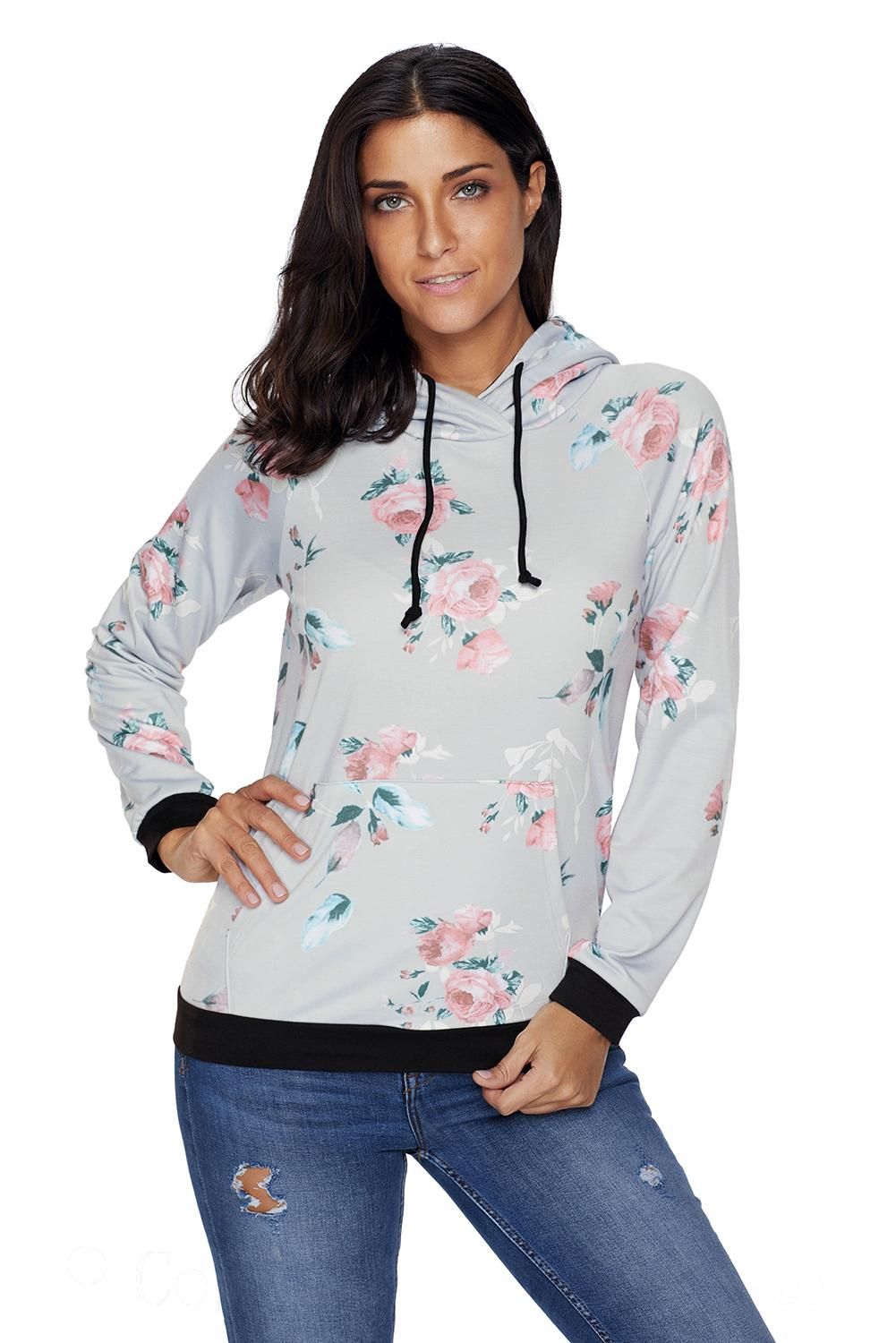 This hoodie is going to be your new go-to comfy look. Its fabric is irresistibly soft and stretchy. It is also lightweight, so you won't be limited to only wearing it on those cold winter nights. The light gray base has a pink floral print and charcoal accents. Our trendy take on a cozy classic.Features All over floral print and black trim and lining design for a delicate lookThe Wholesale hoodies with drawstring gives a cool feelHigh neckline and long sleeves to keep you warmCoordinating with a demin jeans for a casual lookSuitable for fall, winter and for casual, shopping, running etcSize Chart (CM)