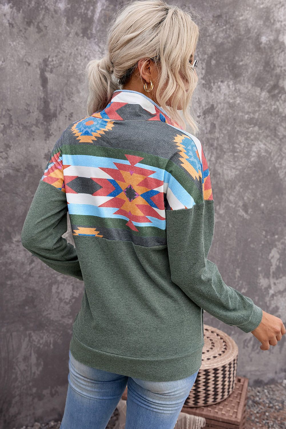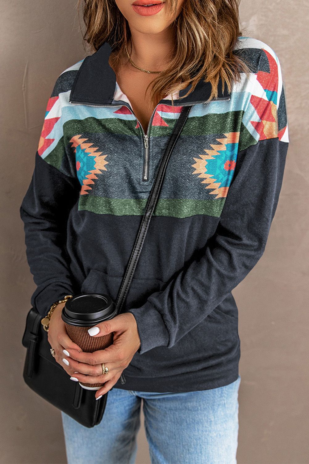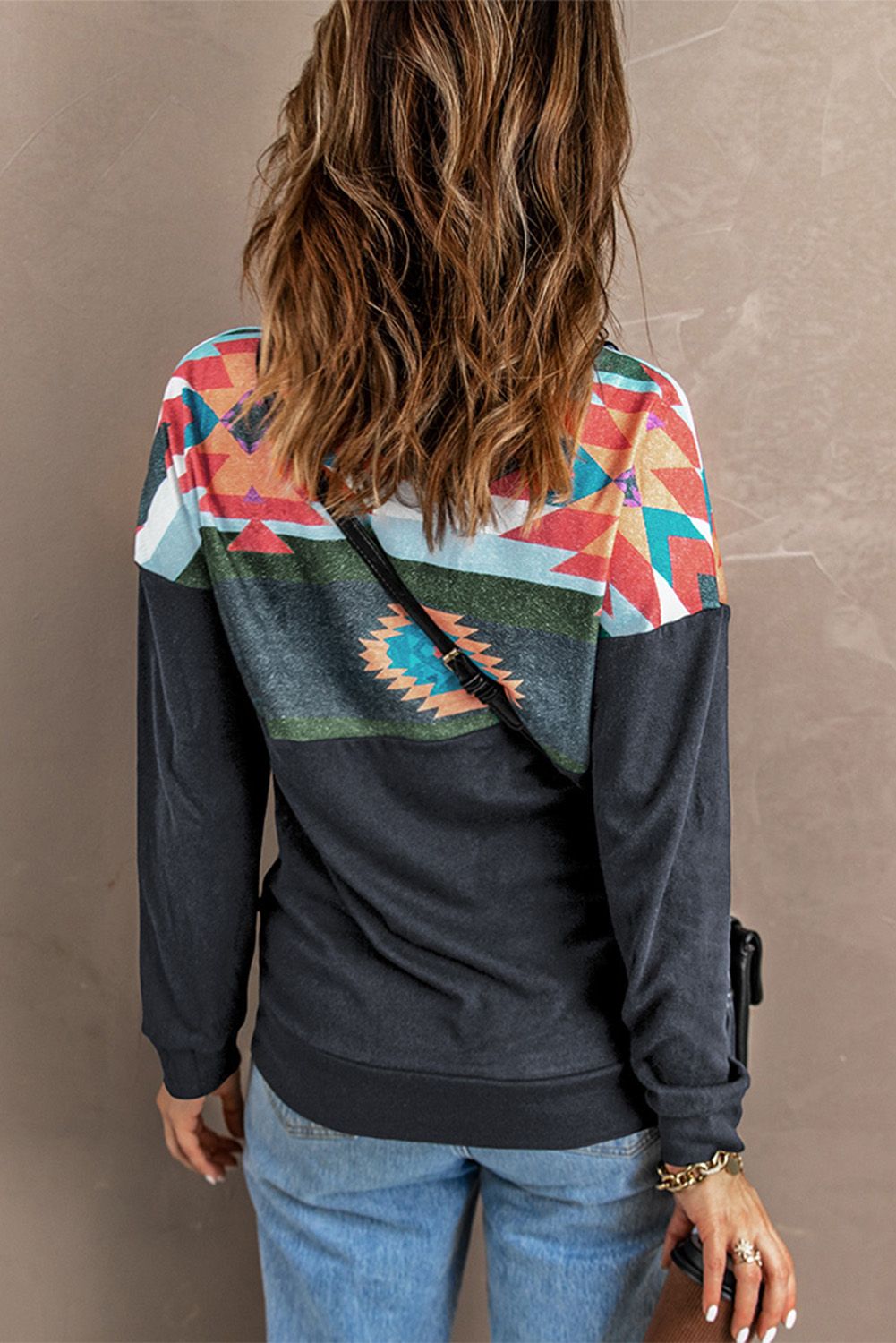 Aztec Print Atop Charcoal Pullover Sweatshirt