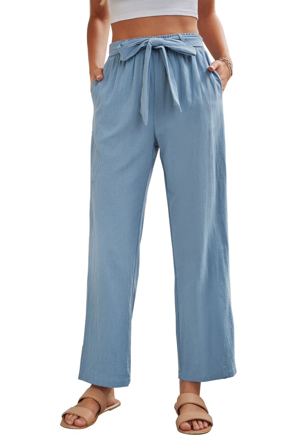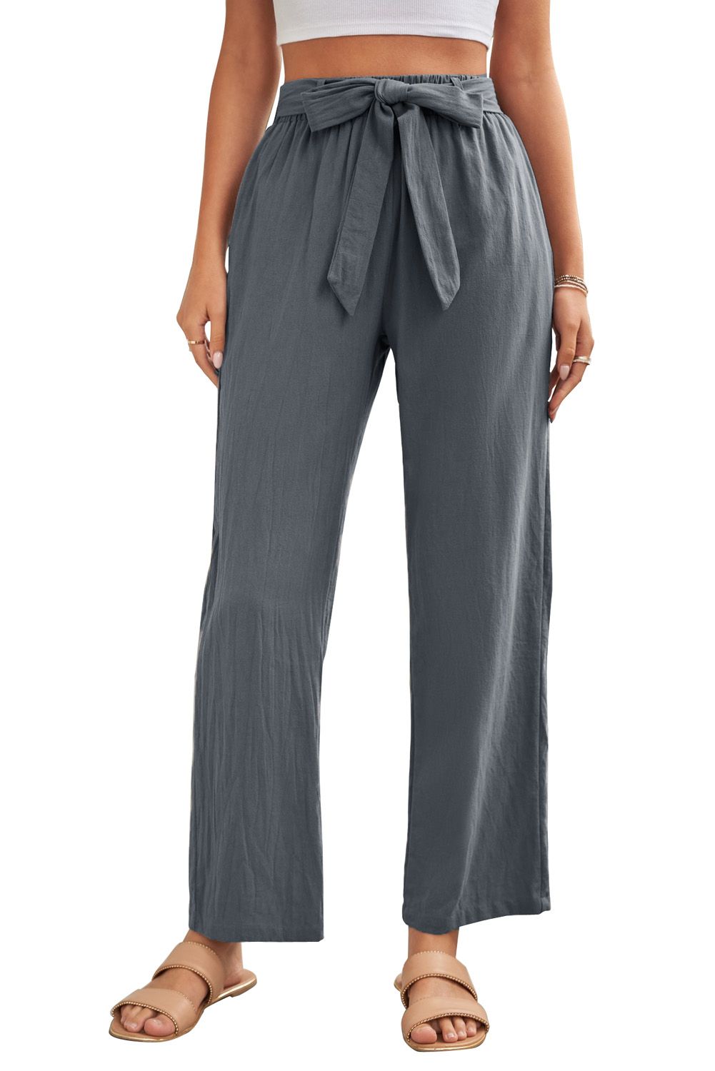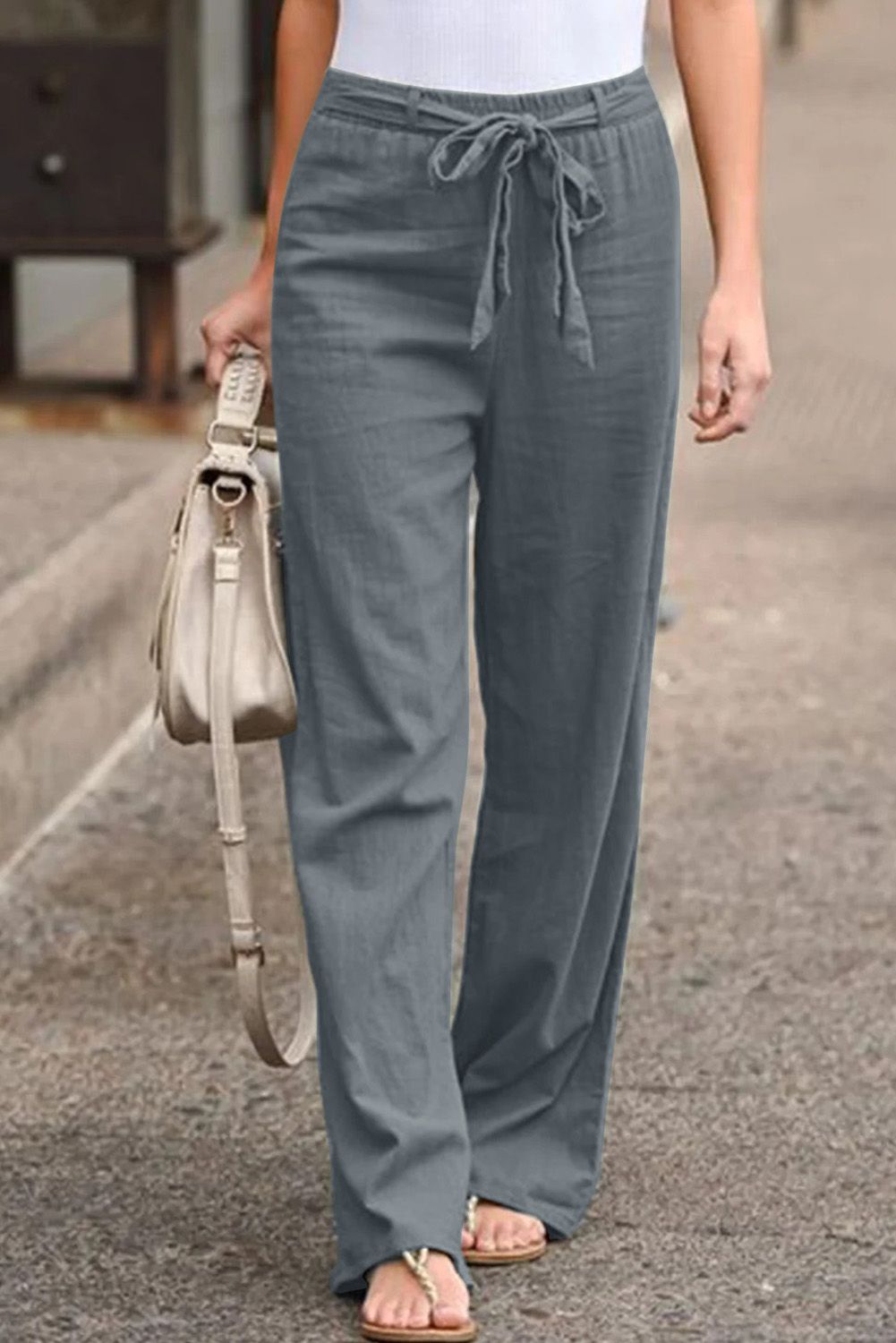 Solid color pants with the wide leg design is casual and comfy for daily wear