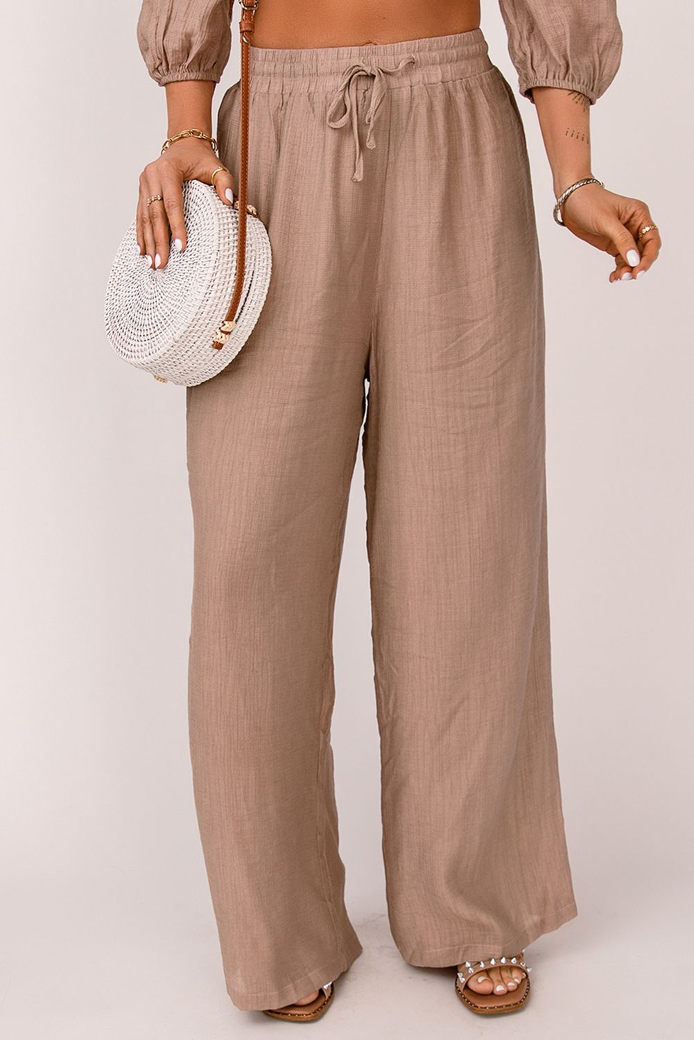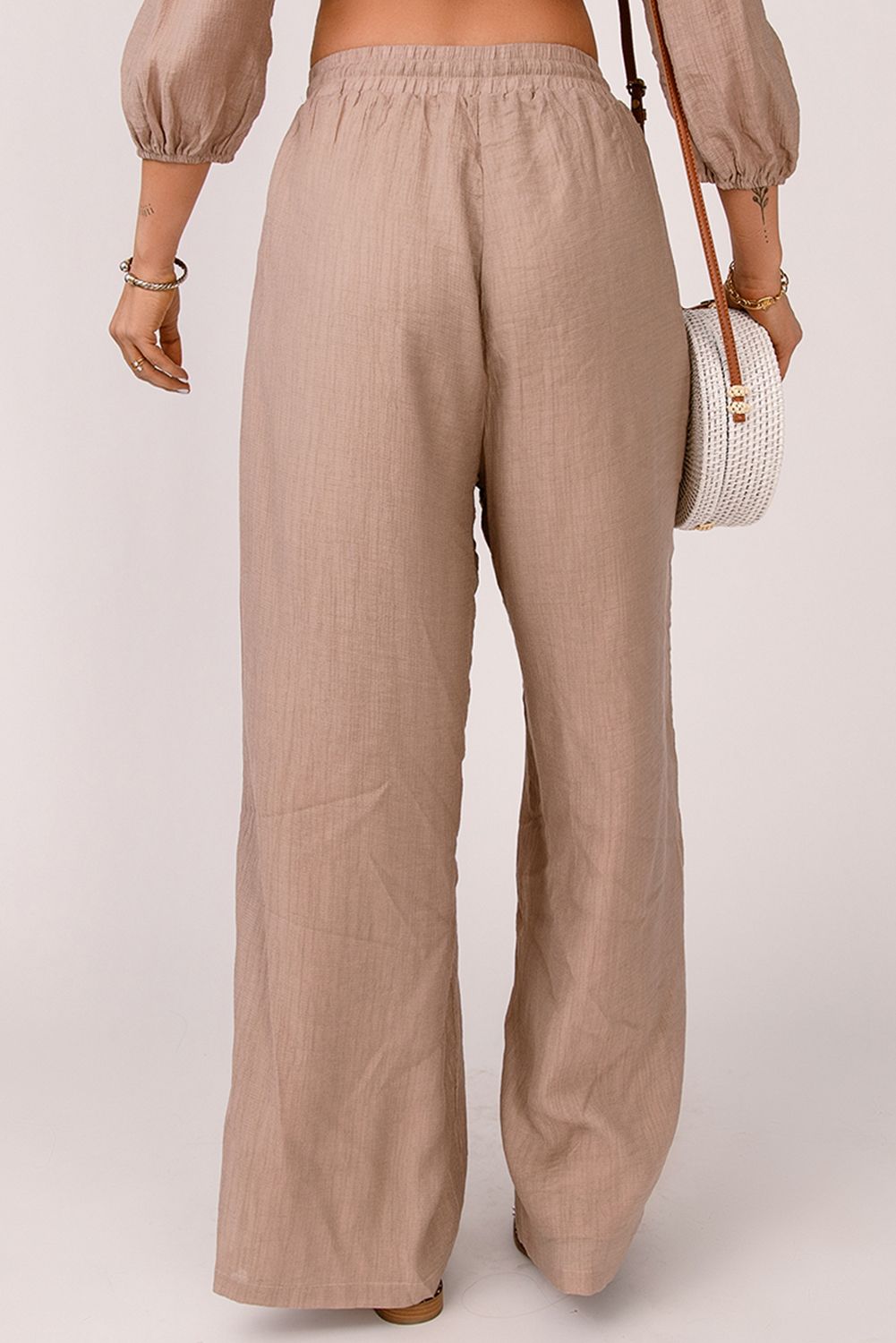Khaki High Waist Drawstring Wide Leg Casual Pants