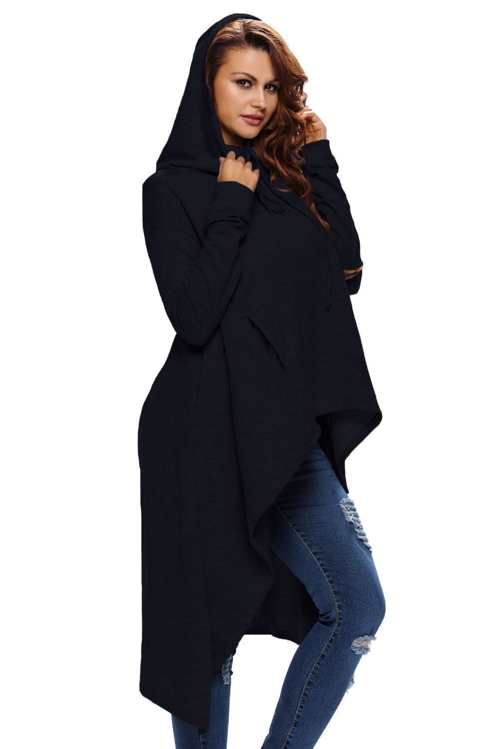 Navy Blue Plain Drawstring Irregular Oversize Hoodie