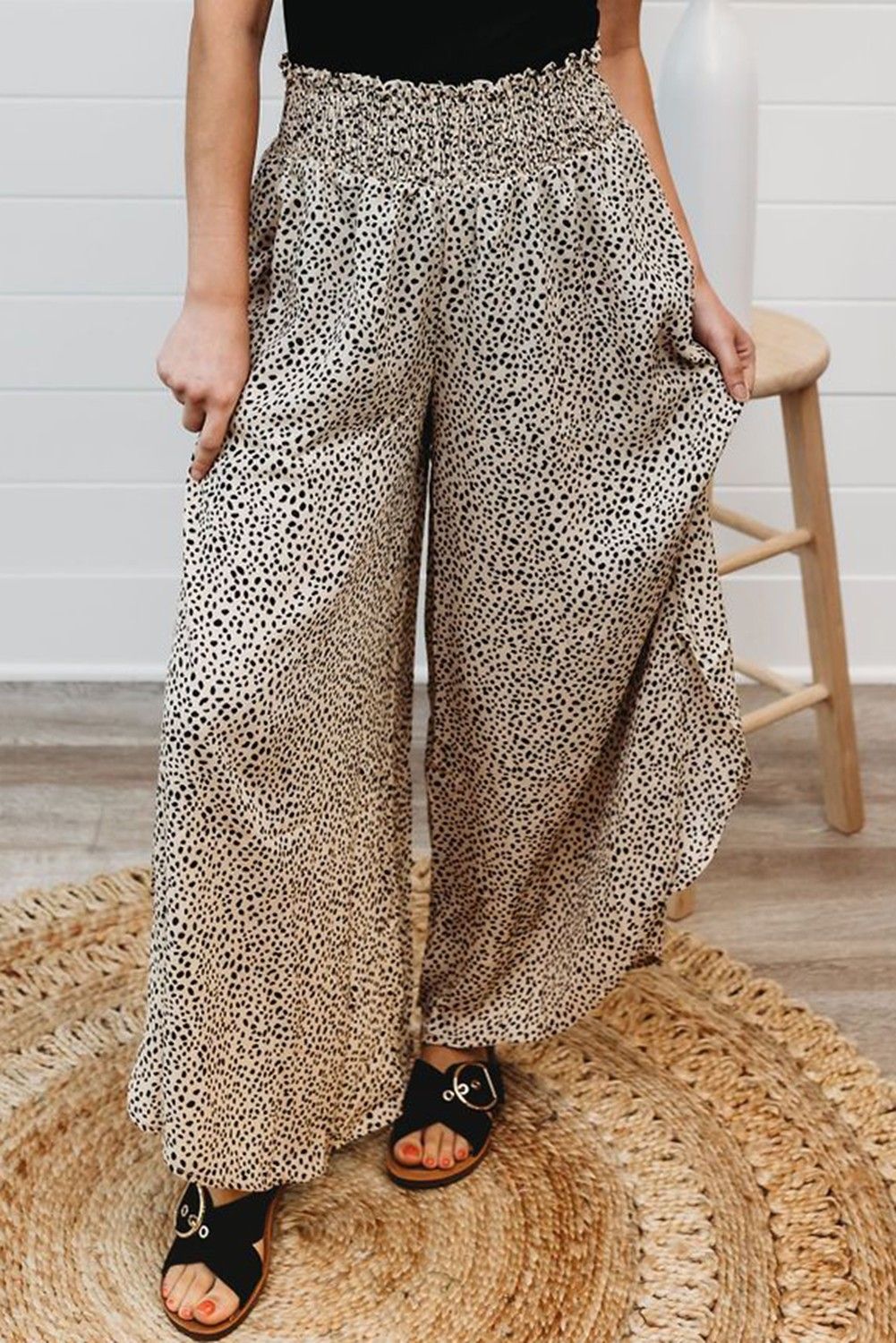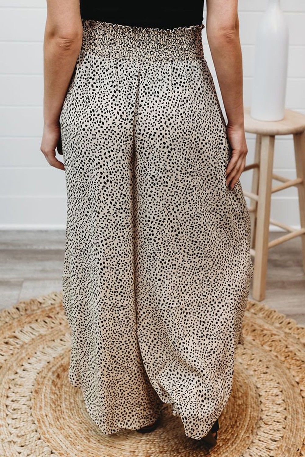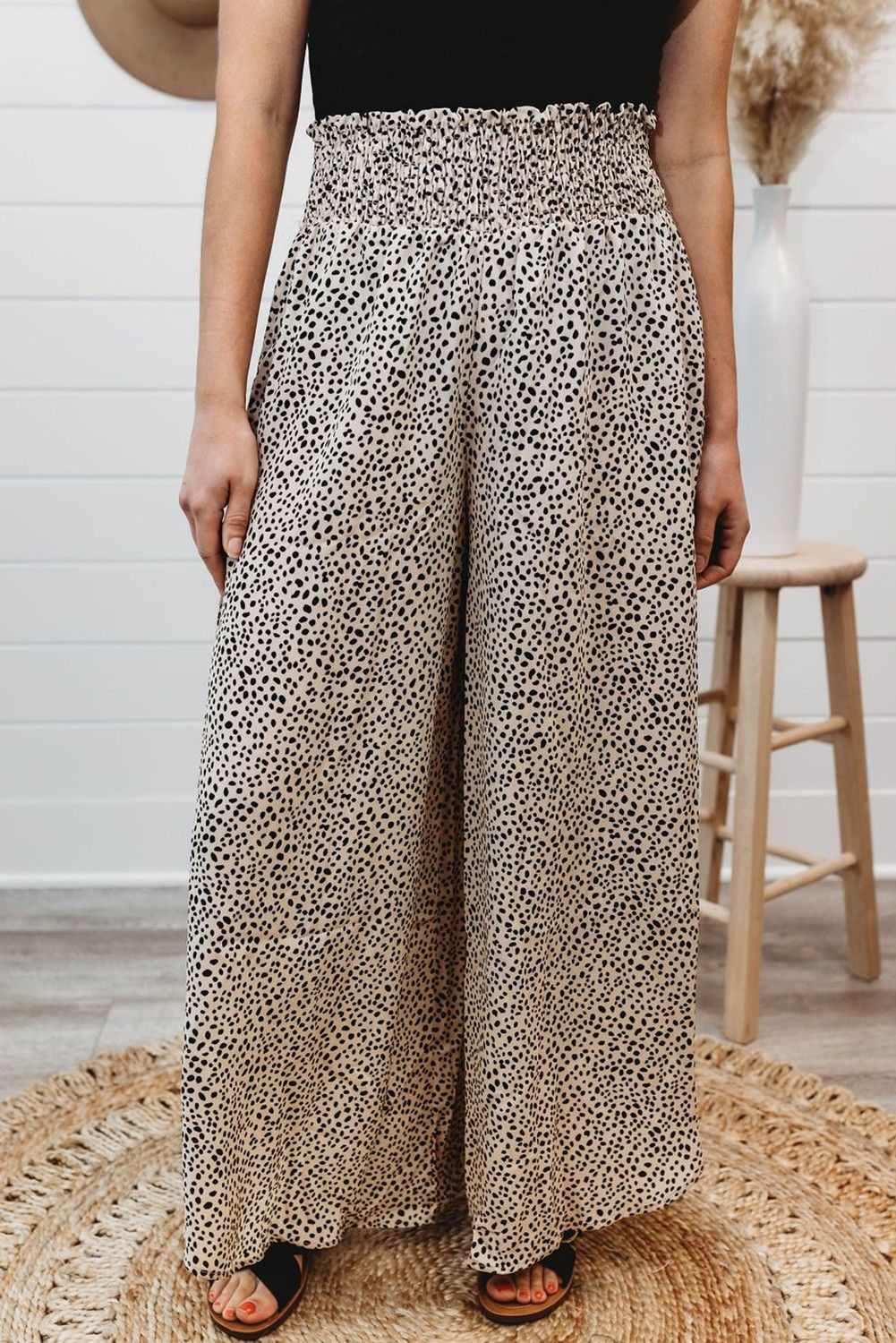 Leopard Print Smocked Waist Flare Pants