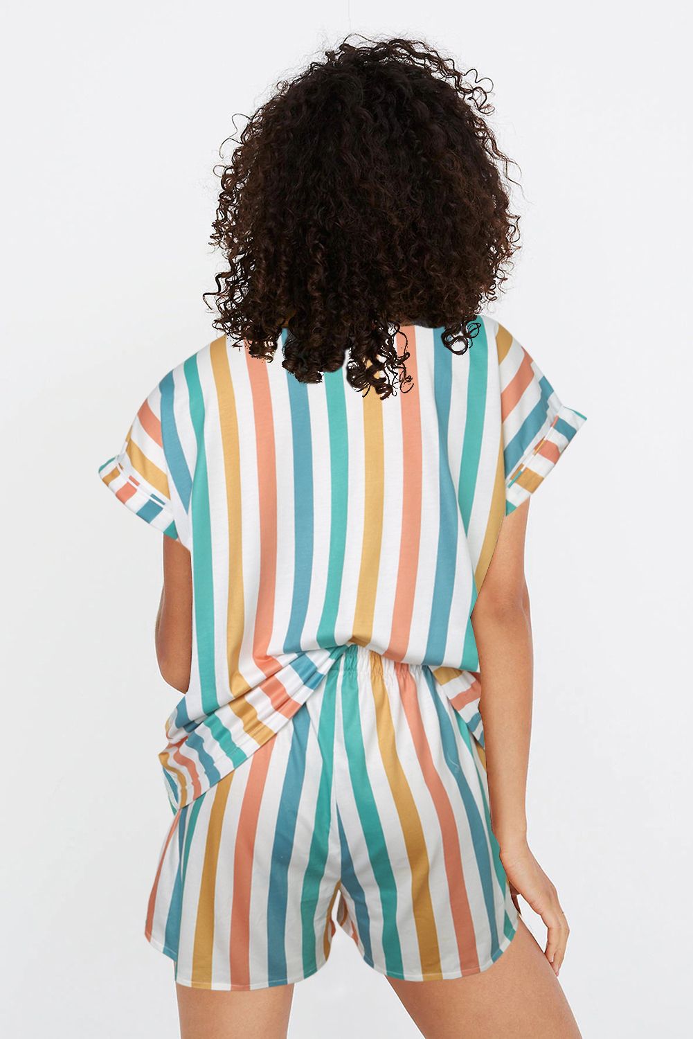 This pajamas set with colorful stripes is the summer color