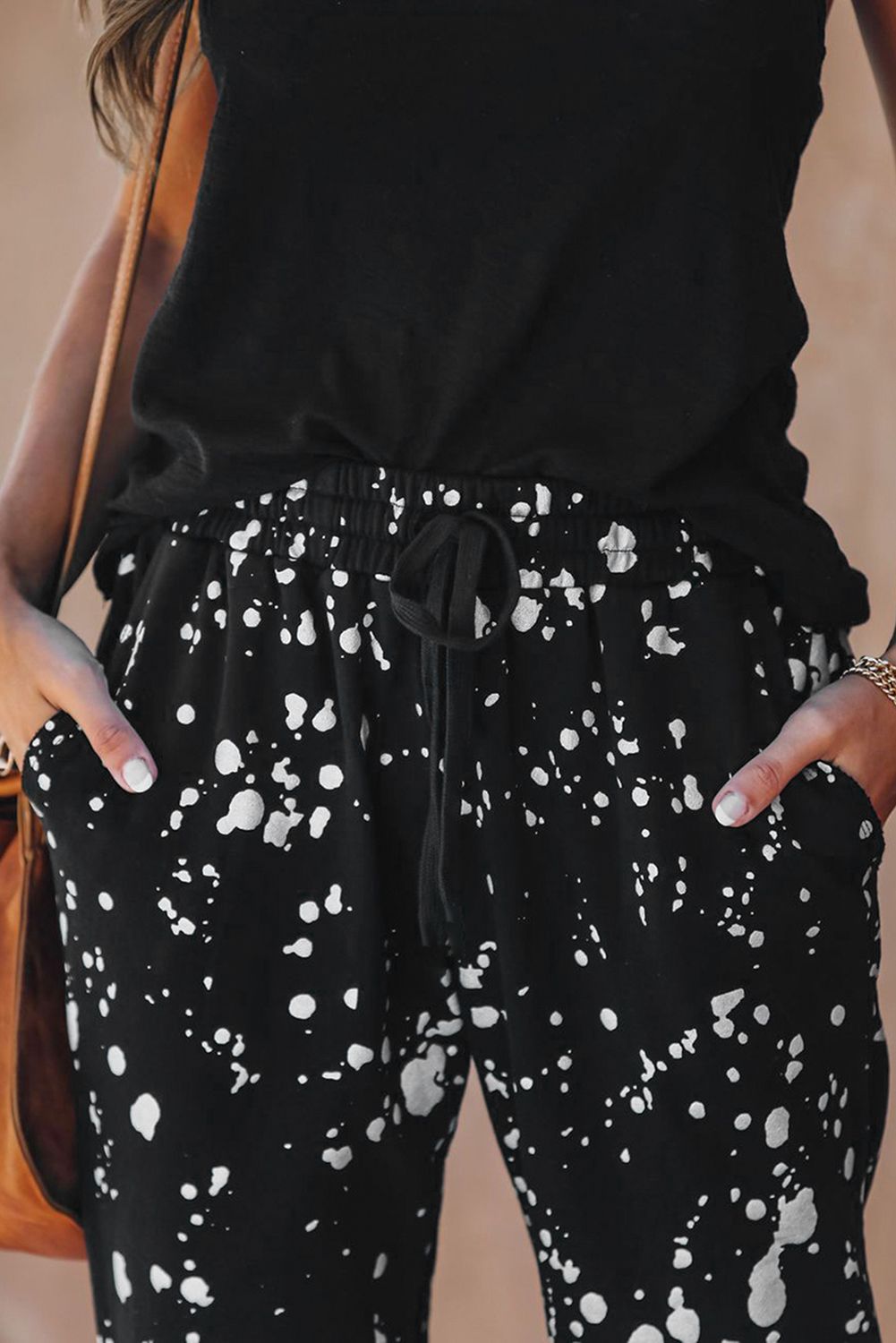 Our Splatter Cotton Pocketed Joggers come splashed with a metallic chrome print throughout a black base