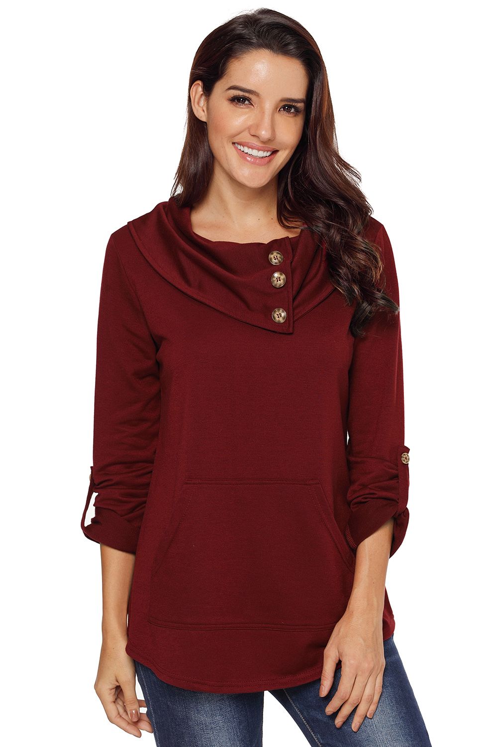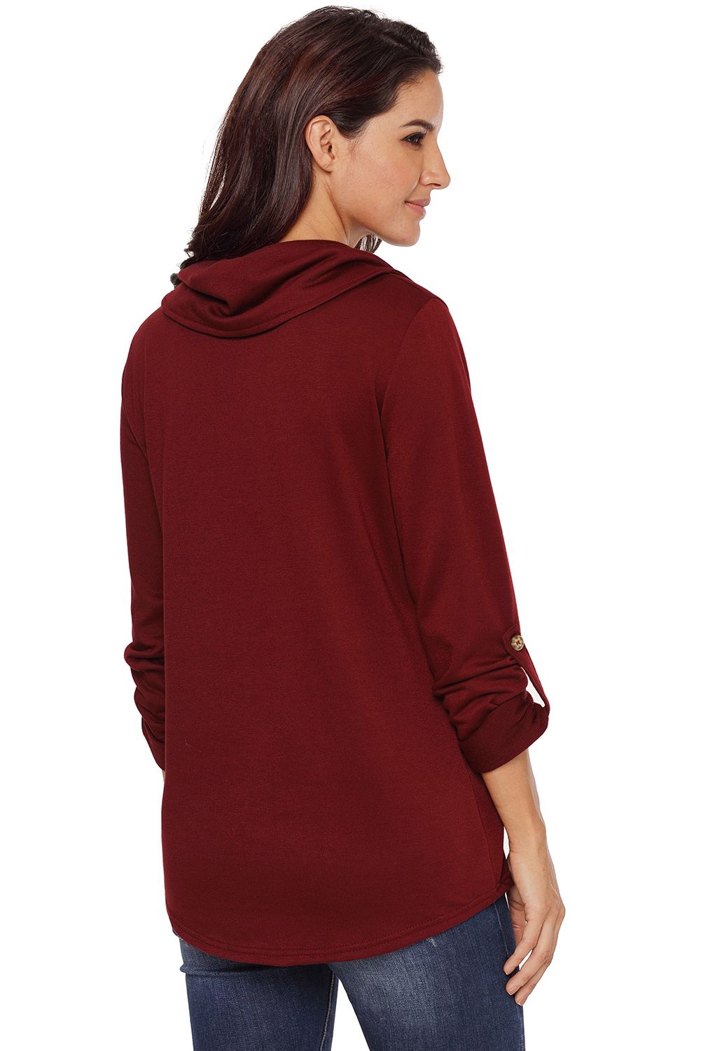 Burgundy Cowl Neck Kangaroo Pocket Pullover Top