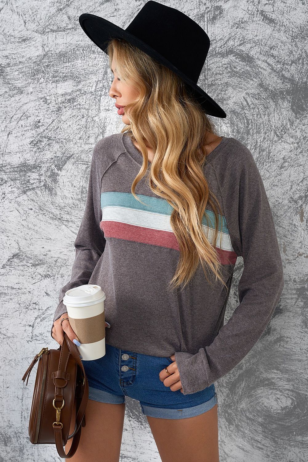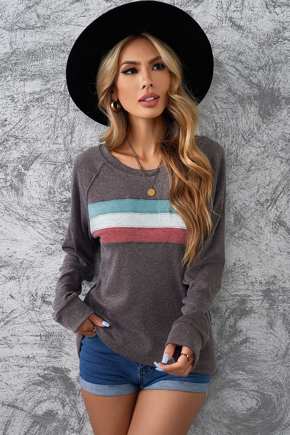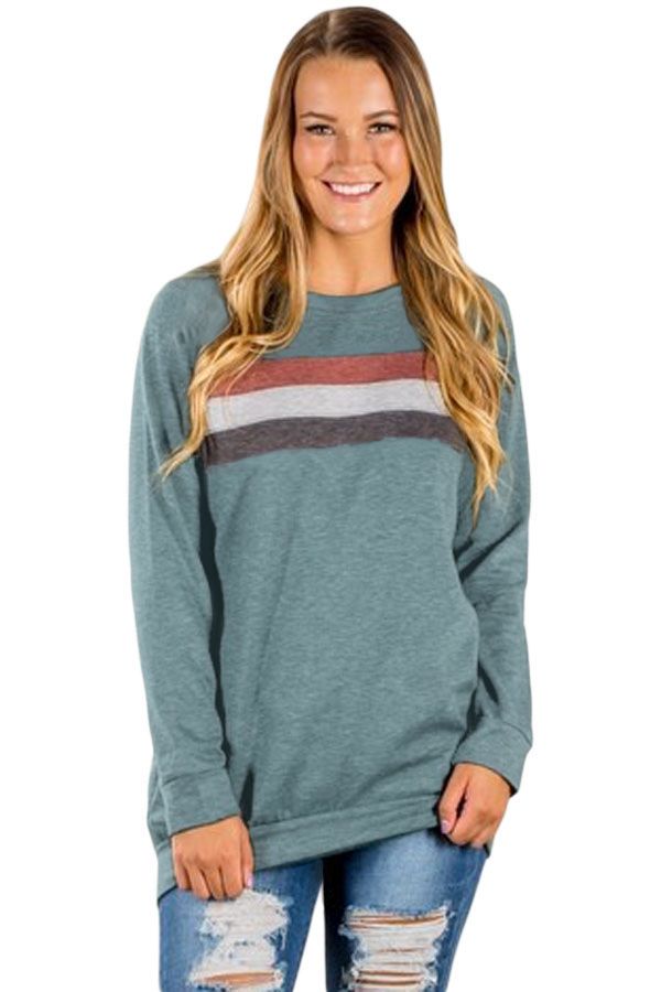 Dark Gray Contrast Stripes Pullover Sweatshirt